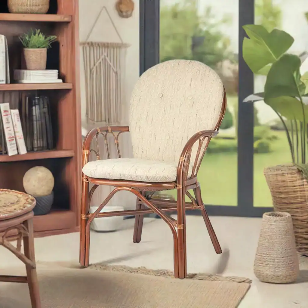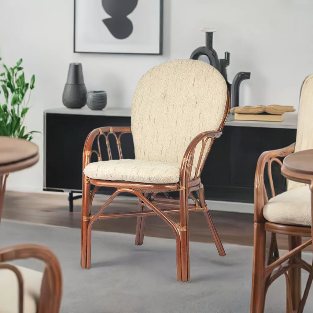 Unvergleichlicher Stil und Komfort: RattaNeo Coral k143 – Eleganter Rattan-Stuhl mit Armlehnen und Polster
