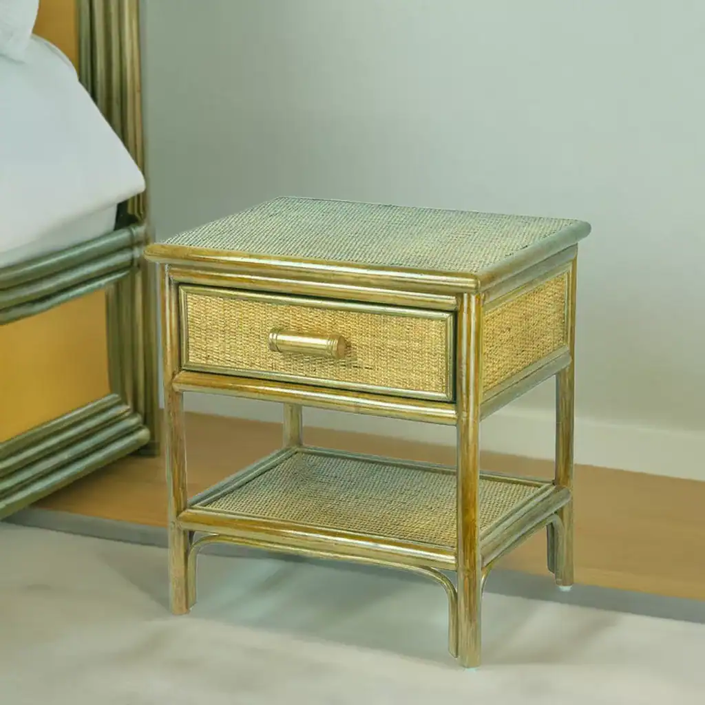 Słowa kluczowe: szafka nocna, RattaNeo Coral, meble rattanowe, szafka w odcieniu oliwkowym, elegancka szafka nocna, praktyczne przechowywanie, wystrój wnętrz, meble do sypialni.