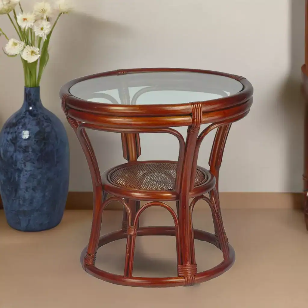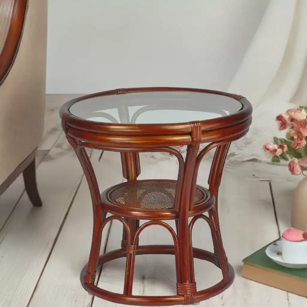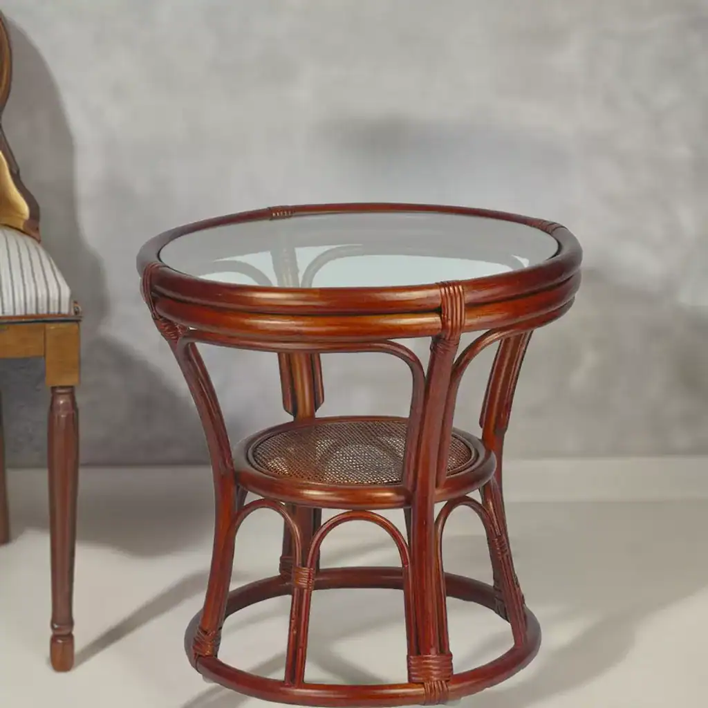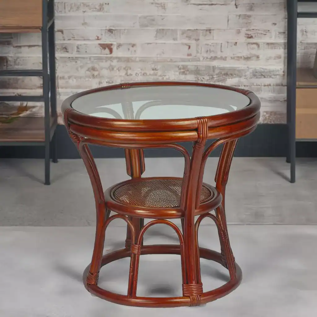 • Unikalny Design: Okrągły, szklany blat o średnicy 54 cm pięknie komponuje się z rattanową półką poniżej, oferując estetyczny i praktyczny element wnętrza.